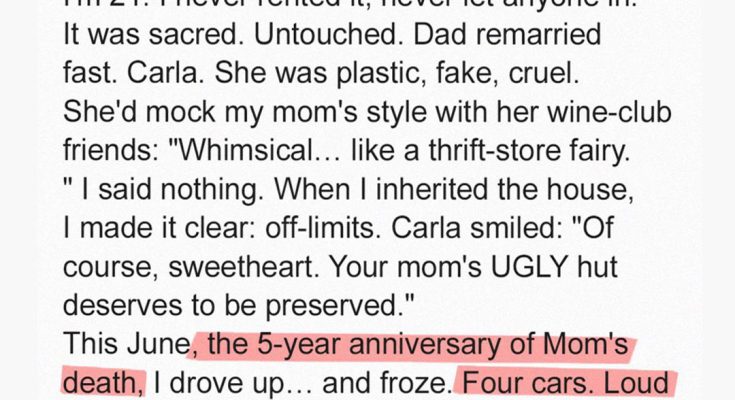 “Dad, I need you to understand,” I told him over dinner one night. “That place is sacred to me. It’s where I go to feel close to Mom. Nobody else goes there. Nobody.”