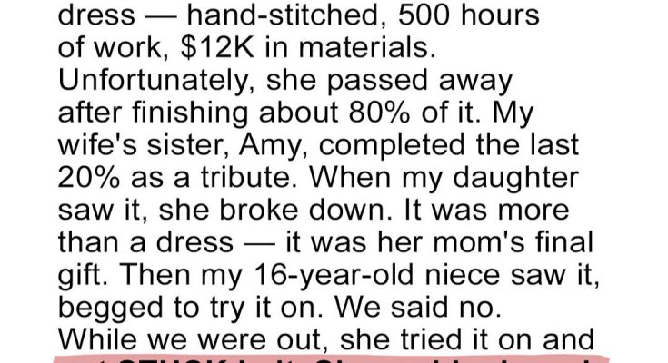 My late wife spent 500 hours hand-sewing the perfect wedding dress for our daughter. It cost $12,000 and was her final act of love before she passed away. Last week, my 16-year-old niece destroyed it in minutes. What happened next still gives me chills.