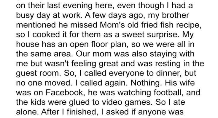 My Brother and His Family Ignored the Dinner I Spent Hours Cooking and Treated Me Like a Servant in My Own Home – Then Our Sick Mom Stepped Out of Her Room