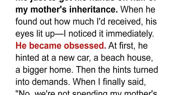 When my mother died and left me her entire fortune, my husband Peter suddenly became the most caring and supportive man on earth. But when I wouldn’t let him spend my inheritance, he decided he didn’t want to live with me anymore. What happened next was something that turned his world upside down.