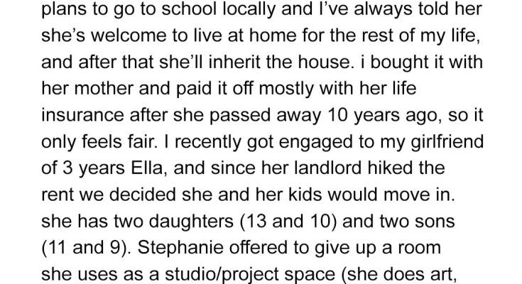 “Your daughter needs to learn she’s not the center of the universe anymore. We’re a blended family now, and that means compromises.”