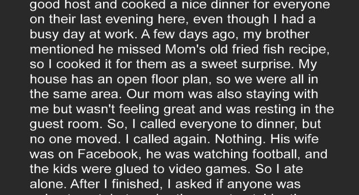 When I invited my brother and his family to stay at my house, I thought we’d finally have quality time together. But after I spent hours cooking dinner and they completely ignored me, I realized I’d made a mistake by inviting them.