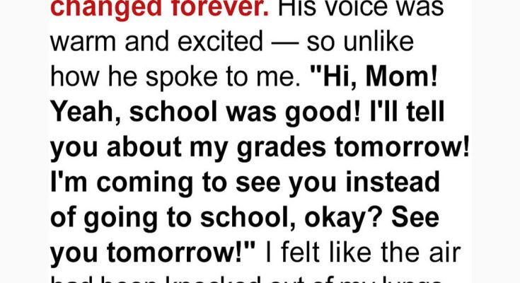 “Then what is it?” I demanded, standing up to face her. “Why is my son calling you ‘Mom’ on the phone? Why is he skipping school to visit you?”