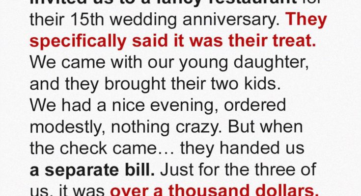 My SIL Invited Us to a Fancy Anniversary Dinner and Then Stuck Us with a $1,122 Bill – I Made Sure She’ll Never Do It Again