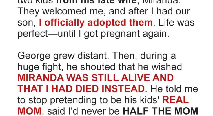 George looked at me, his eyes filled with a cold, bitter rage, and said, “Happy? With you? I wish Miranda was still alive. Hell, I wish you’d been the one who died instead! And you know what? Stop pretending you’re Nick and Emma’s real mom. YOU’RE ONLY HALF THE MOM MY LATE WIFE WAS! Do you understand?”