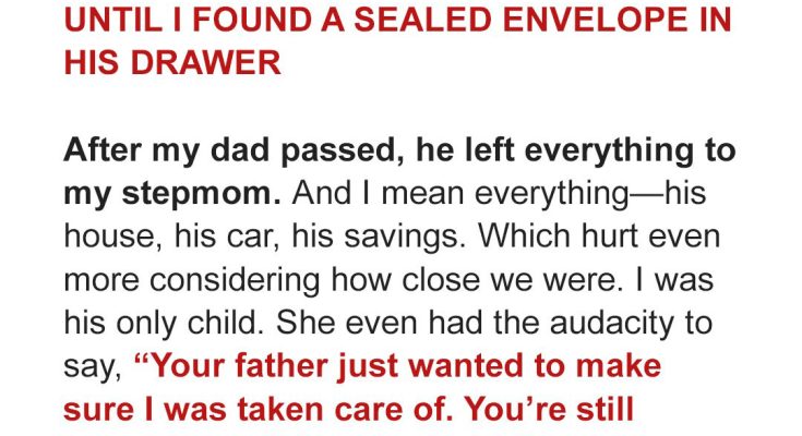 They say grief comes in waves. But nothing prepared me for the tidal wave that hit when I found out my father’s will had left me out completely. It felt like a betrayal… until a dusty envelope buried in his old workshop revealed the truth he knew I’d need to uncover.