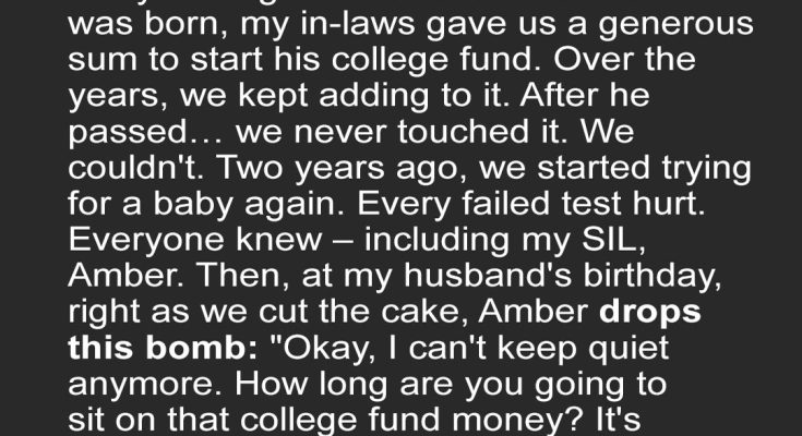 “That money isn’t just some forgotten pot waiting to be reassigned, Amber. It’s his memory. It’s Rob’s legacy. Every dollar in that account came from a place of love. Birthday gifts, hard-earned bonuses, and spare change we could’ve spent on vacations or nicer things… but we didn’t. Because we were building a future for him. A future that never came.”