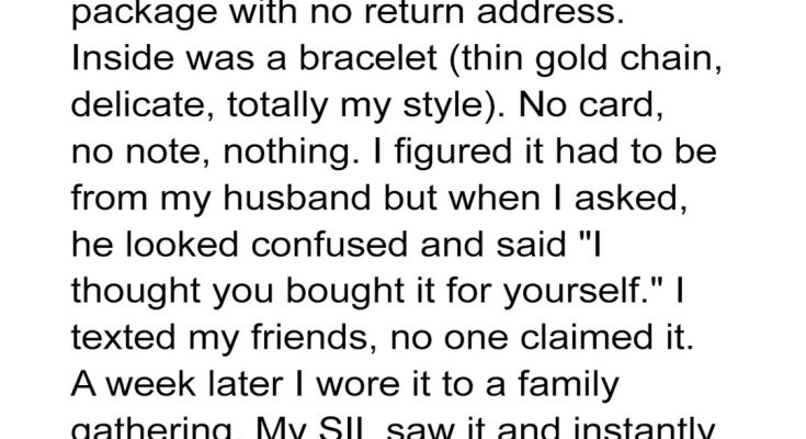 The gold bracelet arrived mysteriously, with no sender and no note. I thought nothing of it until our family dinner when my sister-in-law Emma spotted it on my wrist and turned ghostly pale. The look in her eyes told me this wasn’t just any piece of jewelry.