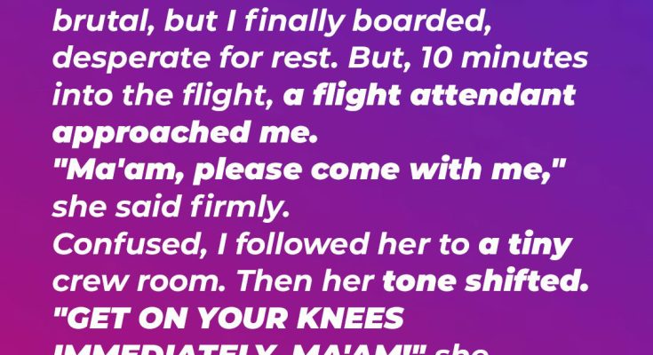 Ten minutes after we were airborne, a flight attendant approached me, her gaze hard.