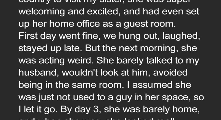 My husband and I flew across the country to visit my sister. She was so excited to have us, but two days later, she looked me in the eye and told me to get a hotel. I didn’t understand why until I found out what my husband had been doing in her house… in her bathroom.