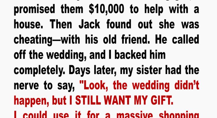 Her behavior—blaming Jack for everything going wrong—was heartbreaking to see. She called me a few days later, after things calmed. “Look, the wedding didn’t happen, but I STILL WANT MY GIFT,” she replied casually.