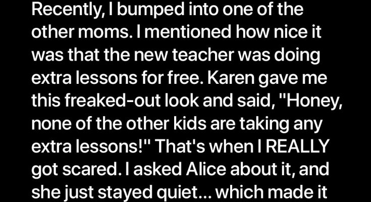 When my daughter’s teacher started holding private lessons with her, I thought she was just being helpful. But when I overheard a conversation between them, everything changed. The truth I uncovered was something I never expected and left me questioning everything.