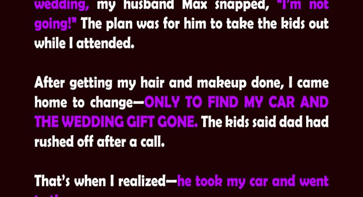 I didn’t know whether to scream or cry. He’d taken MY CAR, ditched OUR KIDS, and gone to the wedding he’d REFUSED to attend. And he hadn’t even bothered to text me.