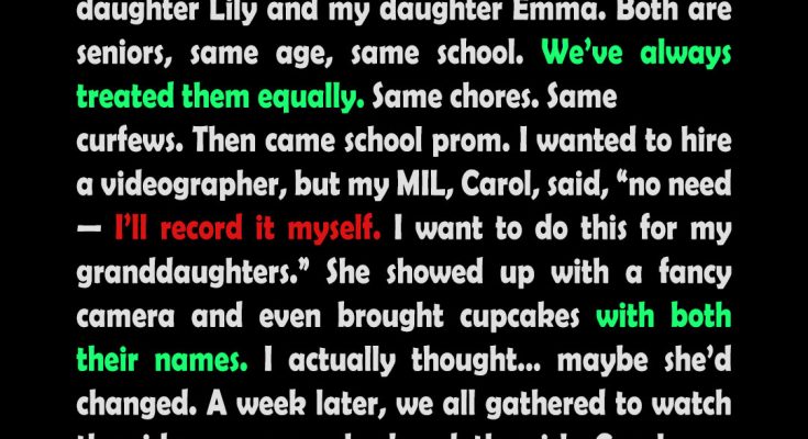 When my MIL insisted on filming our daughters’ prom night, I thought it was a sweet gesture — maybe she’d finally accepted both girls as family. But when we hit play on the video, her cruel favoritism was caught on tape… and what she said left the whole room stunned into silence.