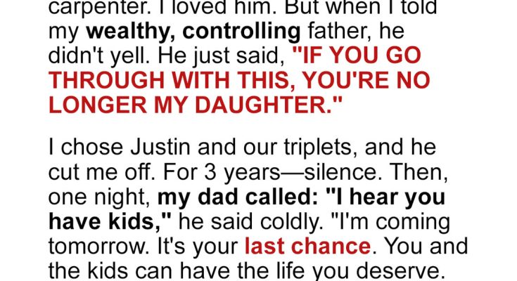 I stepped aside, letting him walk through the door. He moved slowly, inspecting everything as though he were a judge on some reality show. His gaze lingered on the hardwood floors Lucas had installed, the family photos lining the walls, and the corner where the triplets’ toys were neatly stacked. His face was unreadable, but his silence was deafening.