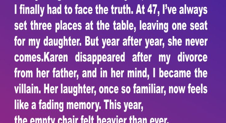 On my 47th birthday, I set the table for three—one seat left heartbreakingly empty. Two years of silence from my daughter, Karen, had hardened into grief. But that night, a forgotten card in an old drawer shattered everything I thought I knew.