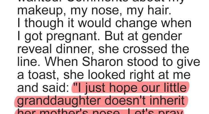 Then she raised her glass and said, loudly, with a smile: “I just hope our little granddaughter doesn’t inherit her mother’s nose. Let’s pray she gets MY genes instead — I’ve always been the pretty one, even now!”