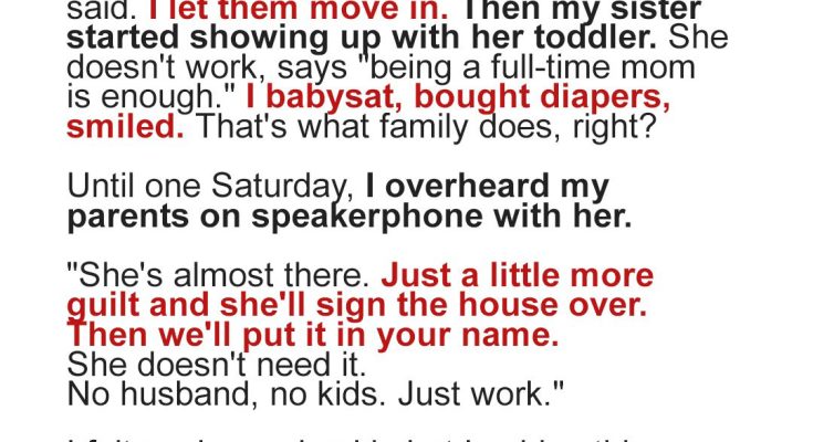 The next morning, I started laying the groundwork. I played along—more friendly, more generous. Dad made passive comments about how “a house like this should belong to those with a future, like us and your sister.”