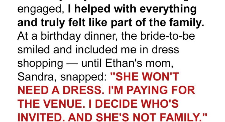 Sandra’s gaze never left Clara’s face, as if I wasn’t even there. “I’m paying for the venue, dear. I decide who comes.” Finally, she glanced at me, her eyes cold. “And she’s NOT family.”