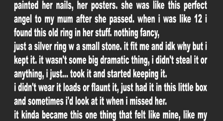 “It’s not even about the ring anymore. It’s about feeling like I don’t matter… like my feelings don’t count because I was too young when she died.”