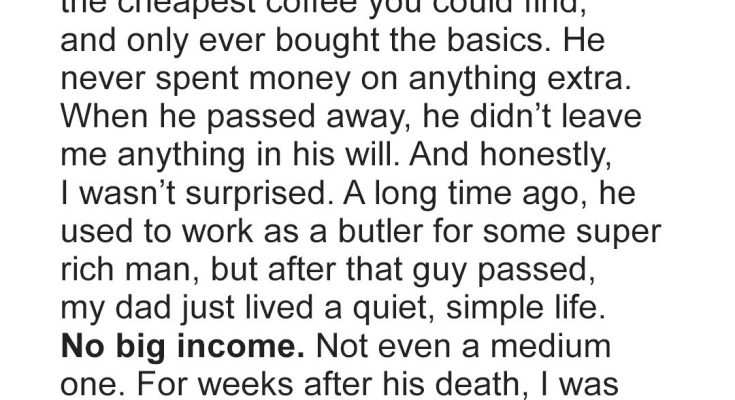 “I’m not expecting much,” I replied. “Dad never talked about savings. He barely made ends meet after Mom passed.”