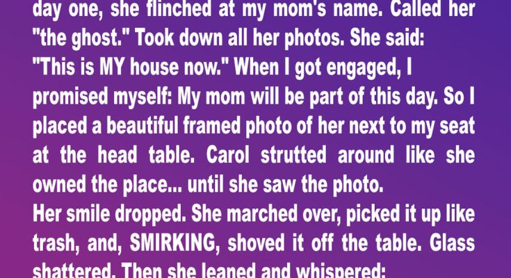 When Carol smashed my mom’s photo at my wedding reception, she thought she’d finally won. She stood there smirking, waiting for me to crumble. But she had no idea what was about to walk through those double doors in exactly 60 seconds.