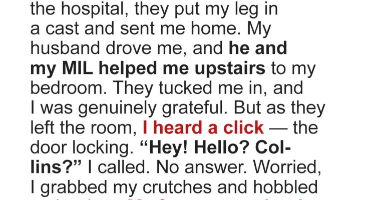 Twenty minutes later, there was pounding on the front door—and this time, it wasn’t me doing it. I hobbled down just as Mia and James came in with a uniformed officer. I told them everything. I showed the paper. I told him how they locked me in.
