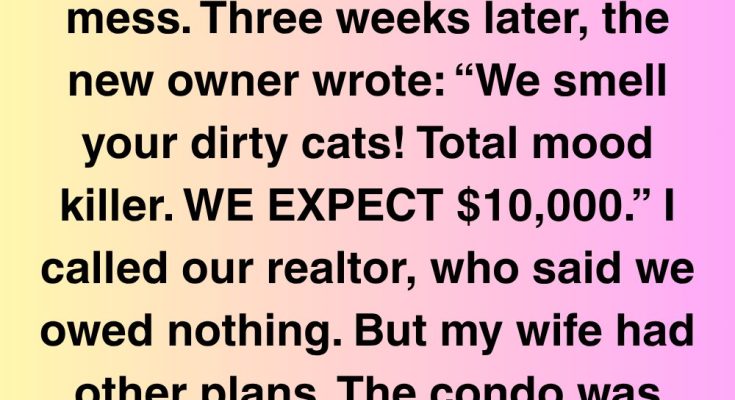 We sold our spotless downtown condo—cleaned top to bottom. Our two tidy cats never made a mess. Three weeks later, the new owner wrote: “We smell your dirty cats! Total mood killer. WE EXPECT $10,000.” I called our realtor, who said we owed nothing. But my wife had other plans. The condo was smart, and we still had app access, so she logged in, turned off the lights, then flashed them like a disco strobe. She adjusted the thermostat to freezing, then boiling. We heard back almost instantly: “What’s going on with the climate control? The lights won’t stay on!” My wife giggled like a kid who’d just pulled a perfect prank. I told her it was risky, but she shrugged. “He threatened us first.”