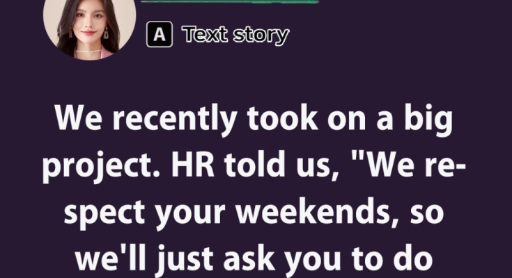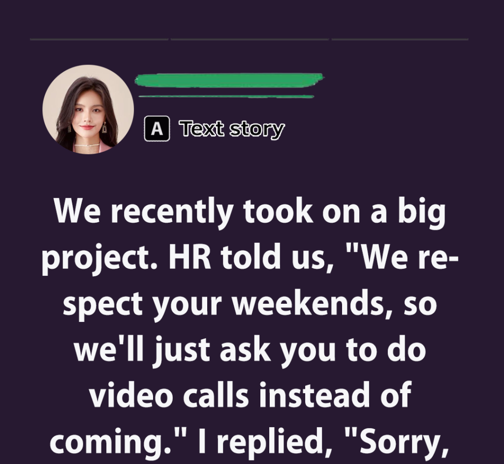 No one said a word. But I replied, “Sorry, my weekends are for family only. I can’t be doing work.” HR smiled politely. That’s when some of my colleagues started to agree with me.