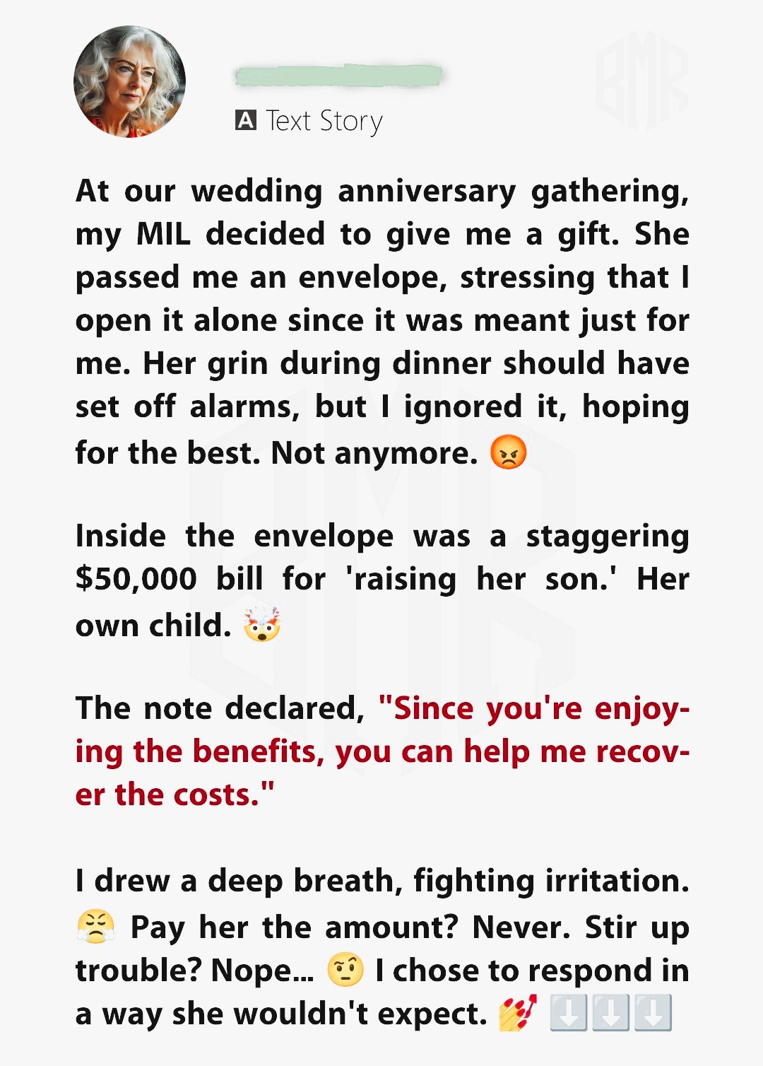 I thought I’d seen it all—until my mother-in-law sent me a bill. Not a joke, not a passive-aggressive jab, but a literal invoice for “raising the man I married.” She itemized everything: diapers, school fees, even snacks. I stared at the paper, stunned. My husband, bless him, was equally horrified. “She’s lost it,” he muttered. But I wasn’t angry—I was heartbroken. This wasn’t about money. It was about control, resentment, and a twisted sense of entitlement. I married her son, not her debt. And now, I had to decide how to respond without tearing the family apart.