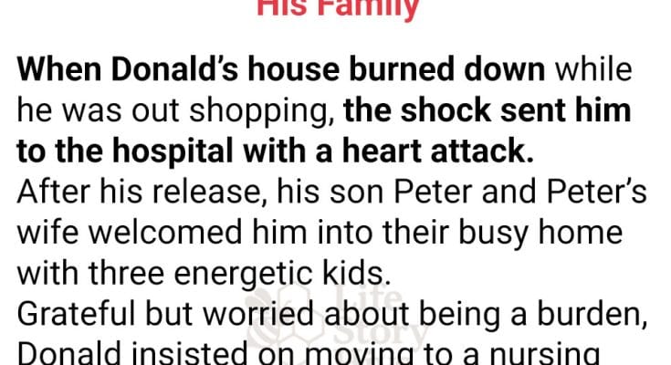 Donald had to move in with his son Peter after his house burned. But he started to think he was burdening his child because they stayed out late every night. Therefore, the older man decided to move into a nursing home. But his son had the most beautiful surprise in store.