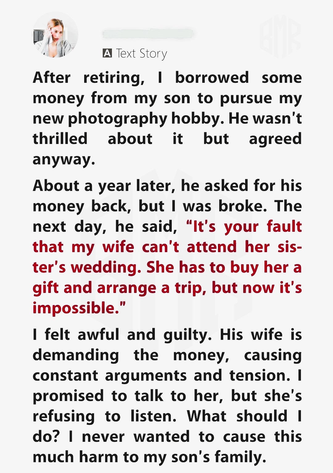 After retiring, I felt a surge of excitement about finally pursuing my passion for photography. But the equipment was expensive, and I didn’t have the funds. So I turned to my son. He hesitated, clearly uncomfortable, but eventually lent me the money. I promised I’d pay him back soon. At the time, I truly believed I would. I never imagined that this decision would unravel so much in his life.