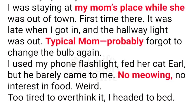 My mom was out of town. I came to water her plants, feed the cat, and sleep off a long day. But when I collapsed onto her bed, it wasn’t empty. A stranger was already in it—snoring. And when I screamed, he said my name like he’d known me forever.