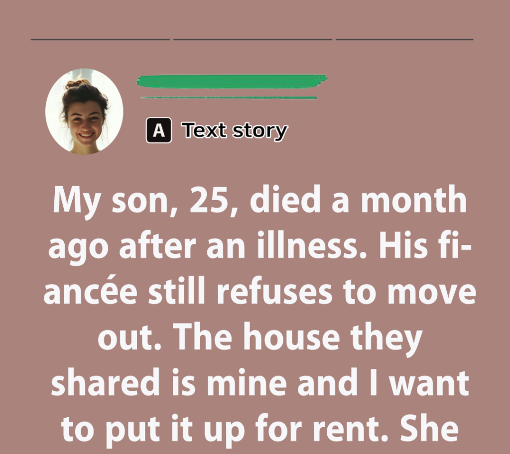 My son, 27, passed away a month ago after an illness. His fiancée still refuses to move out.