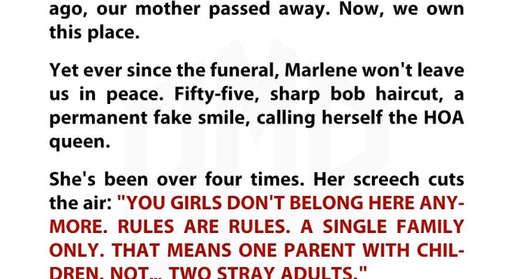 Marlene, the HOA head, showed up with her pastel cardigans and plastic smile, calling us “stray adults.” She claimed the bylaws didn’t recognize siblings as family. Her words stung, but her intent was worse—she wanted us gone. Iris and I were still reeling from Mom’s funeral, and now we were being told we didn’t belong in our own house. The legal consultant she brought handed us a violation notice. We were given 72 hours to vacate. It felt surreal. Our names were on the will. Our memories were in the walls. But to them, we were just technicalities.