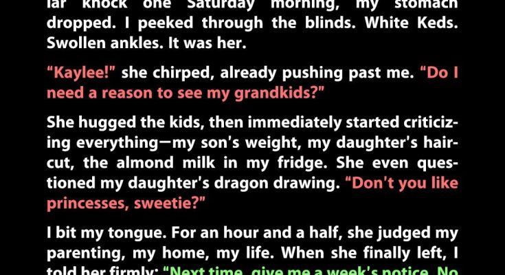 I’m Kaylee, and I thought divorcing my husband would mean peace. But his mother, Linda, didn’t get the memo. She showed up unannounced one Saturday morning, nine hours from her home, barging into my apartment like she owned it. She hugged the kids, criticized my parenting, judged my groceries, and even questioned my daughter’s haircut. I stayed calm, but when she said, “You look like you need help,” I drew the line. I told her she couldn’t just drop in. She left offended—but I knew she’d be back. And when she returned, she brought chaos with her.