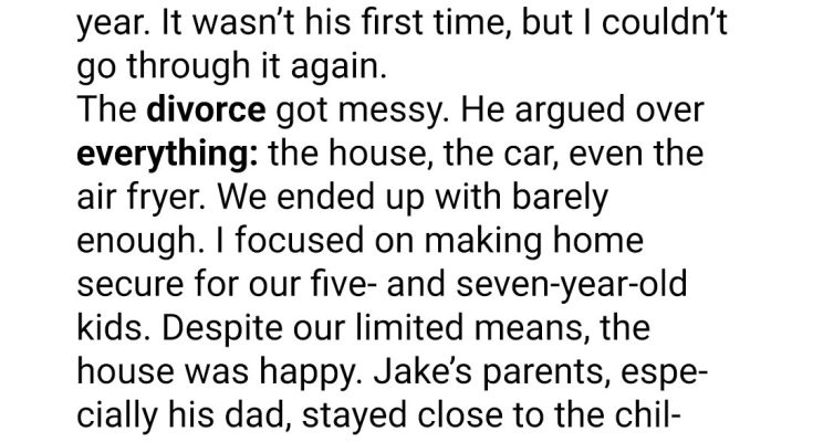 The divorce that followed was vicious. Jake contested everything, not because he needed any of it, but because he couldn’t stand to lose and was spiteful. He wanted the house, which he didn’t get because my name was on the mortgage.