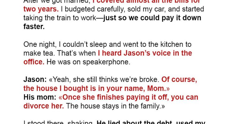 Every sacrifice I’d made — selling my car, skipping lunches, working overtime — all of it had been a lie. There wasn’t any debt; they were just using me all along.
