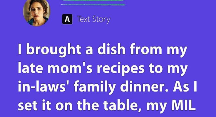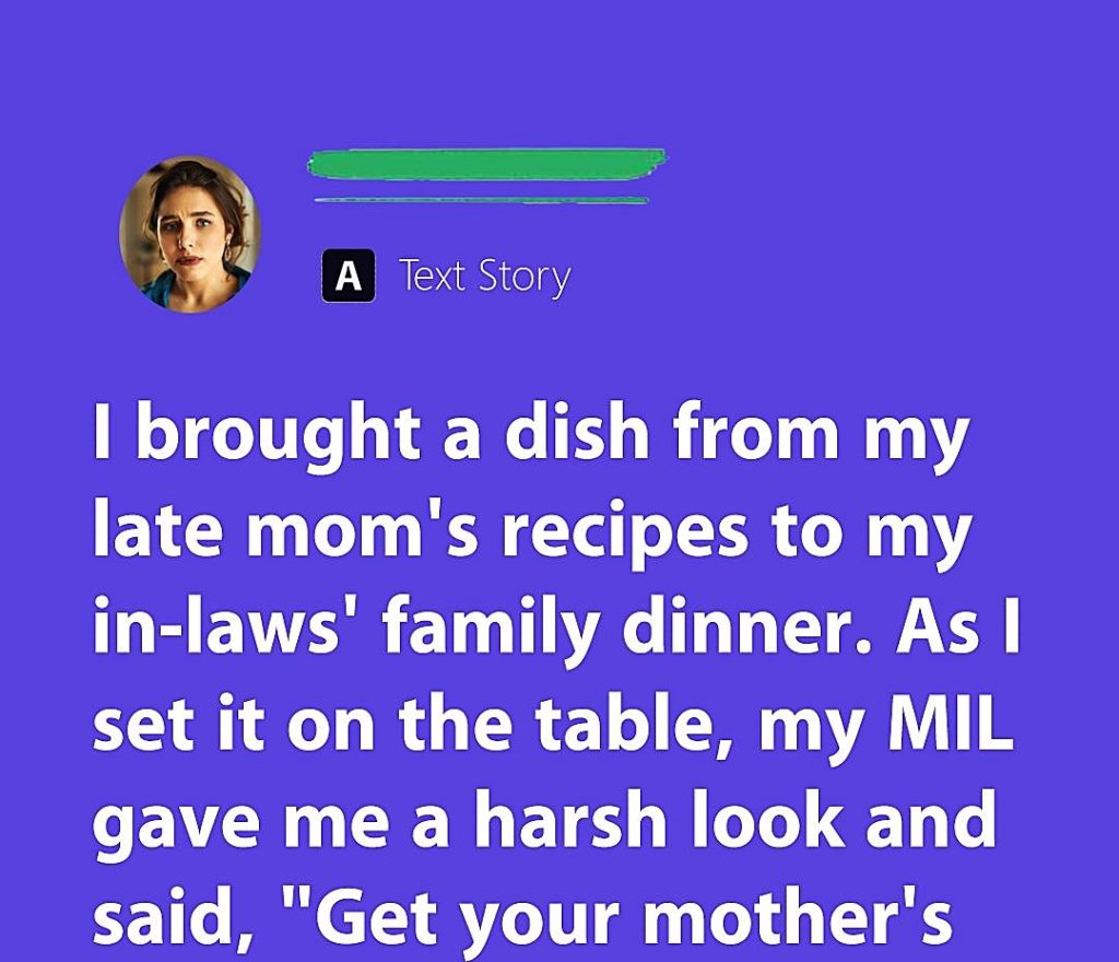I’m a 25-year-old newlywed, married to my loving husband, who is 28. Last weekend, I brought a dish from my late mom’s recipes to my in-laws’ family dinner. As I set it on the table, my MIL gave me a harsh look and said, “Get your mother’s food out of my house!”