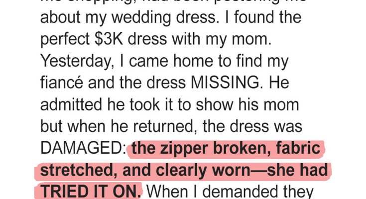 I didn’t think much of it when my future MIL kept pestering me about my wedding dress until I came home to find my $3,000 gown missing! The truth? She’d tried it on, ruined it, and refused to pay. Furious and desperate, I confronted her — armed with a secret weapon that changed everything.