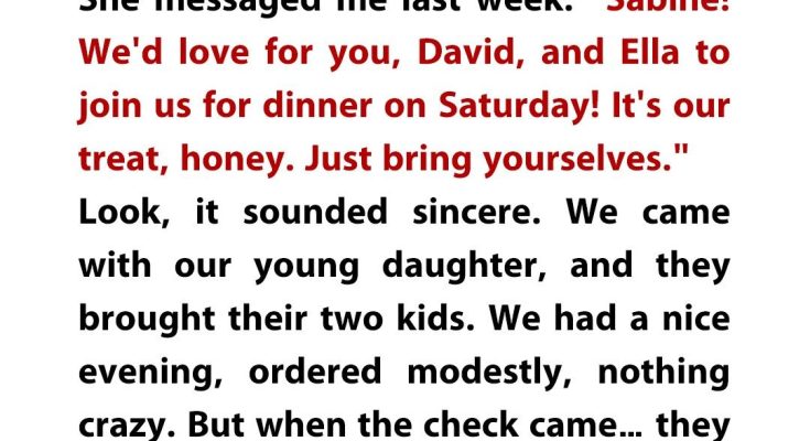 Sabine thought she was walking into a celebration of love. Her sister-in-law Amanda had invited her, her husband David, and their daughter Ella to a lavish downtown restaurant for Amanda and Jeff’s 15th anniversary. “It’s our treat, honey,” Amanda had promised. Sabine even brought a heartfelt card with $200 tucked inside—a gesture of goodwill and respect.
