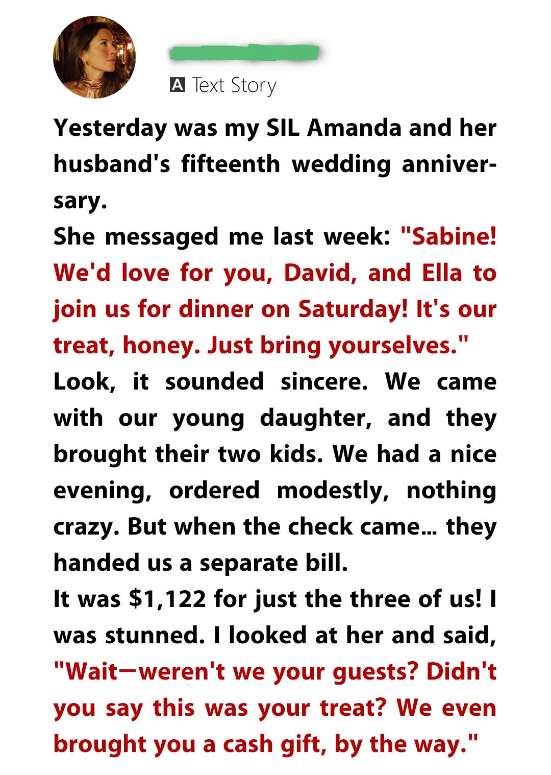 My SIL’s ‘Generous’ Anniversary Invite Came with a $1,122 Surprise—She Won’t Dare Try That Again