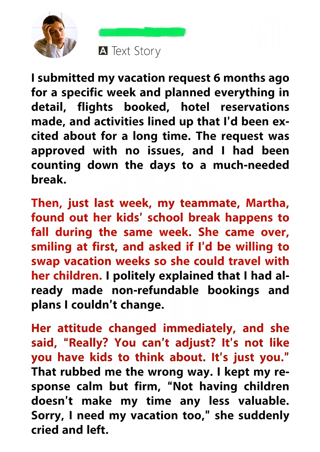 I’d been dreaming of this vacation for years—no diapers, no dishes, no drama. Just me, a beach, and silence. As a mom of three, I rarely get a moment to breathe. So when I finally booked a solo getaway, I felt like I’d won the lottery. But the moment my family found out, the guilt-tripping began. “You’re abandoning your kids,” my sister said. “What kind of mother leaves her family for fun?” My husband was supportive, but the rest of them made me feel like I was committing a crime against motherhood.