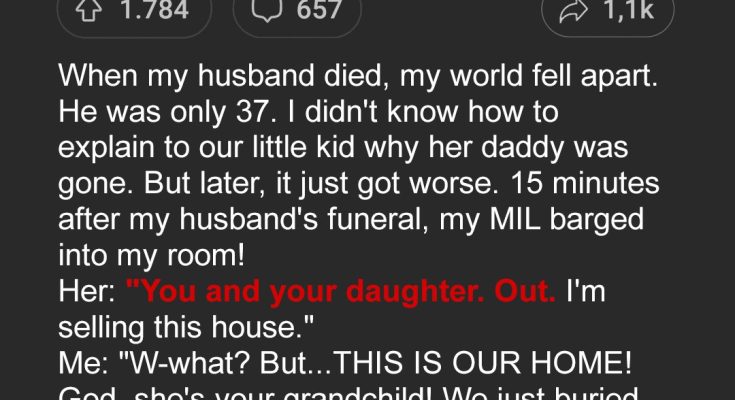 At my husband’s funeral, I could barely hold myself together — let alone explain death to our daughter. But the real blow came hours later when my mother-in-law walked into our home and calmly told me to leave. Grief had barely begun, and I was already being erased.
