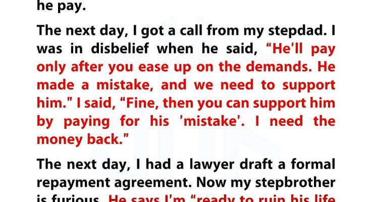 The next day, I had a lawyer draft a formal repayment agreement. That’s when the backlash began. My stepbrother called me heartless, claiming I was “ruining his life over a car.” My stepdad accused me of tearing the family apart and demanded my mom cut ties with me. Suddenly, I wasn’t just the victim—I was the villain.